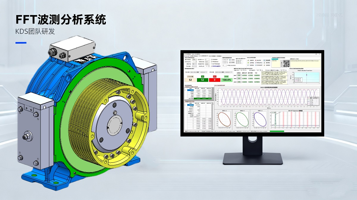 У сфері тестування продуктивності тягових машин звичайні методи в основному включають тестування на вібрацію, тестування на шум тощо. Однак точне фіксування форм напруги та аналіз робочих даних є основою оцінки стану двигуна. Після значних удосконалень команда NIDEC Elevator Motor Team самостійно розробила систему аналізу форми хвилі БПФ, засновану на принципі зворотної електрорушійної сили тягових машин — без необхідності використання складних зовнішніх датчиків, вона може генерувати синусоїди тільки шляхом перетворення сигналу, забезпечуючи більш ефективне та точне рішення для тестування тягових машин.