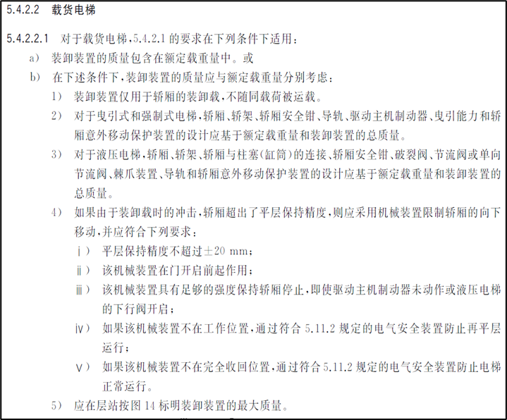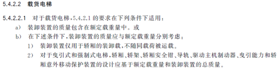 Тягові машини вантажних ліфтів мають велику вантажопідйомність і вимагають більшого навантаження на вал, ніж звичайні тягові машини, що означає, що вони потребують більшої сили тяги та більш зносостійких тягових шкивів під час роботи на високій швидкості. Останній стандарт GB/T 7588.1-2020 передбачає, що під час прийняття 5.4.2.2.1(b) (тобто окремо враховуючи масу завантажувально-розвантажувального пристрою та номінальне навантаження) висуваються більш високі вимоги до навантаження на вал тягової машини, гальмівної здатності (особливо, коли гальмо служить виконавчим компонентом для захисту від ненавмисного руху автомобіля) і тягової потужності, які повинні бути розраховано та перевірено незалежно.