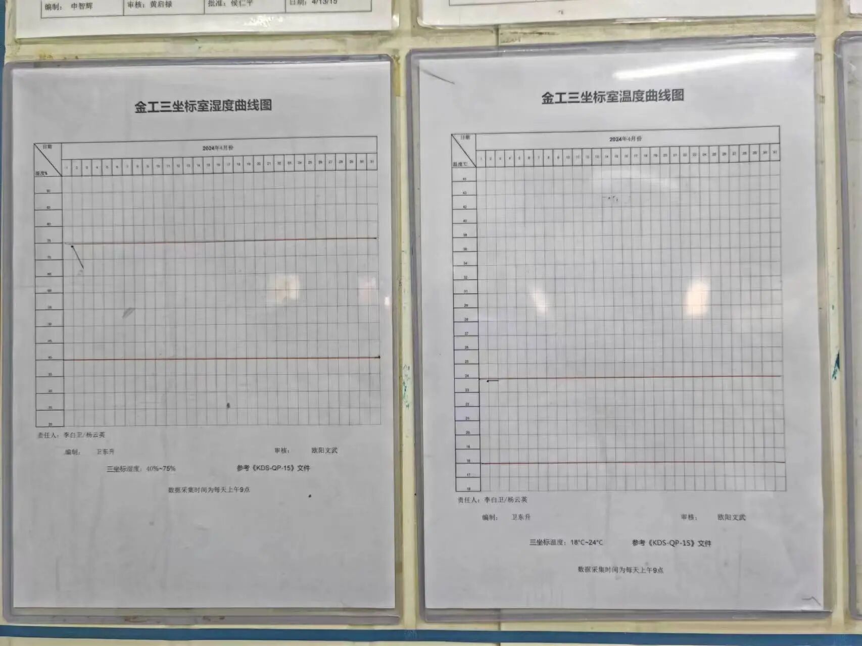 KDS має загалом 8766 одиниць/комплектів інструментів та обладнання для виробничих випробувань, усі вони включені в систему управління метрологічної книги для єдиного управління. Система метрологічного менеджменту контролює весь процес вимірювальних інструментів і обладнання, починаючи з первинної реєстрації на місці, першої подачі на перевірку, метрології в процесі експлуатації, до оцінки та управління в процесі експлуатації. Метрологічна книга управління дає змогу ефективно контролювати стан кожного засобу вимірювальної техніки, своєчасно попереджати про нестандартні ситуації, запобігати виходу з ладу приладу та неточності вимірювань, забезпечуючи тим самим надійну гарантію забезпечення точності та надійності засобів вимірювальної техніки та обладнання. Протягом 12 років поспіль KDS досягла нульових помилок у веденні метрологічної книги випробувальних інструментів і обладнання.