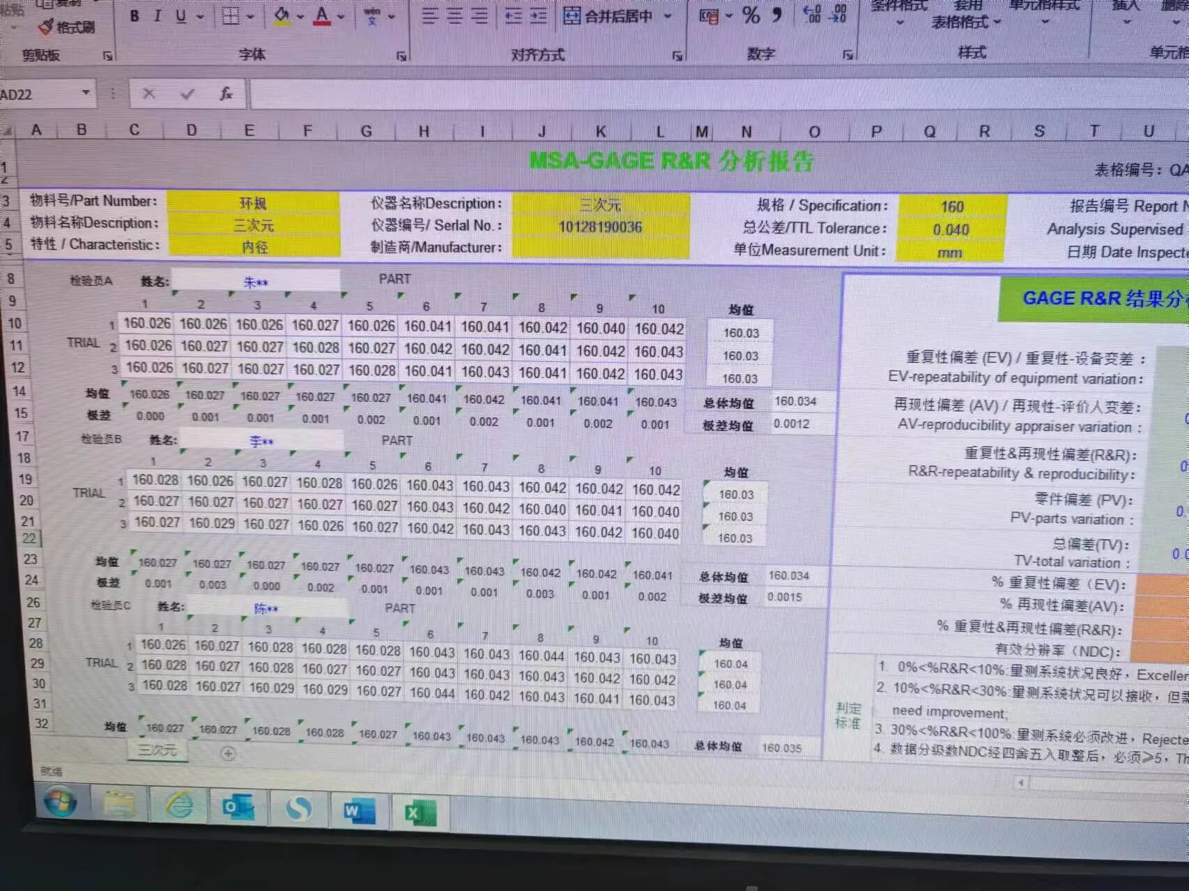 По-перше, оператори обладнання проводять детальні перевірки продуктивності під час запуску обладнання, щоб переконатися, що обладнання завжди знаходиться в нормальному стані. У той же час, для високоточного випробувального обладнання температура та вологість випробувального середовища суворо контролюються відповідно до вимог робочого середовища обладнання, щоб забезпечити точність і надійність даних випробувань. Компанія приділяє велике значення розвитку талантів і розробила комплексний та ефективний поточний план навчання, щоб оператори обладнання могли швидко опанувати навички експлуатації обладнання. У 2023 році Метрологічна лабораторія провела 6 спеціальних тренінгів щодо використання та запобіжних заходів випробувального обладнання, підготувавши для компанії 35 операторів магістрального обладнання. Для важливого обладнання було сформульовано детальний план аналізу R&R GAUGE. У 2023 році GAUGE R&R-аналіз проводився на кількох ключових випробувальних обладнаннях, і фактичне відхилення було значно нижчим за прийнятні вимоги щодо відхилення обладнання.